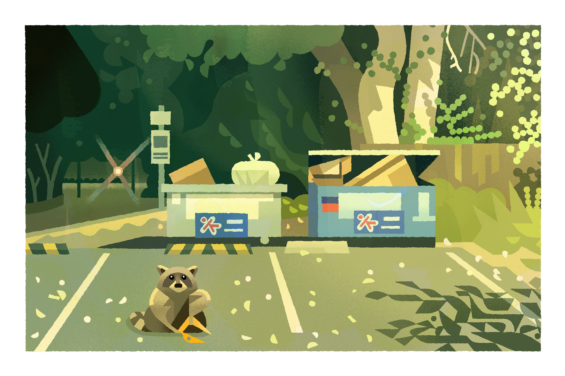 6” x 9” original art print of a raccoon caught taking a lil' snack break, digitally printed on high quality “felt textured” paper.